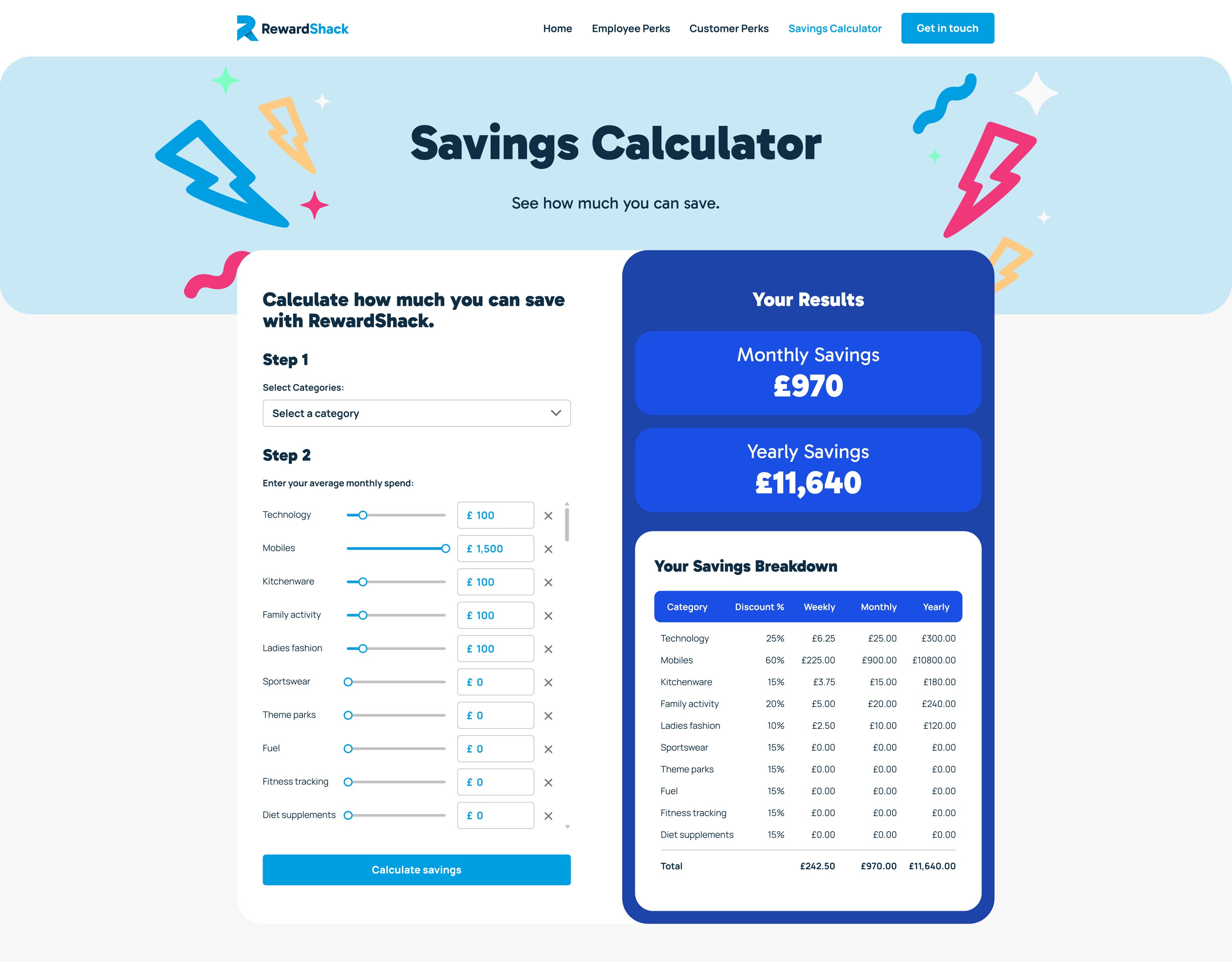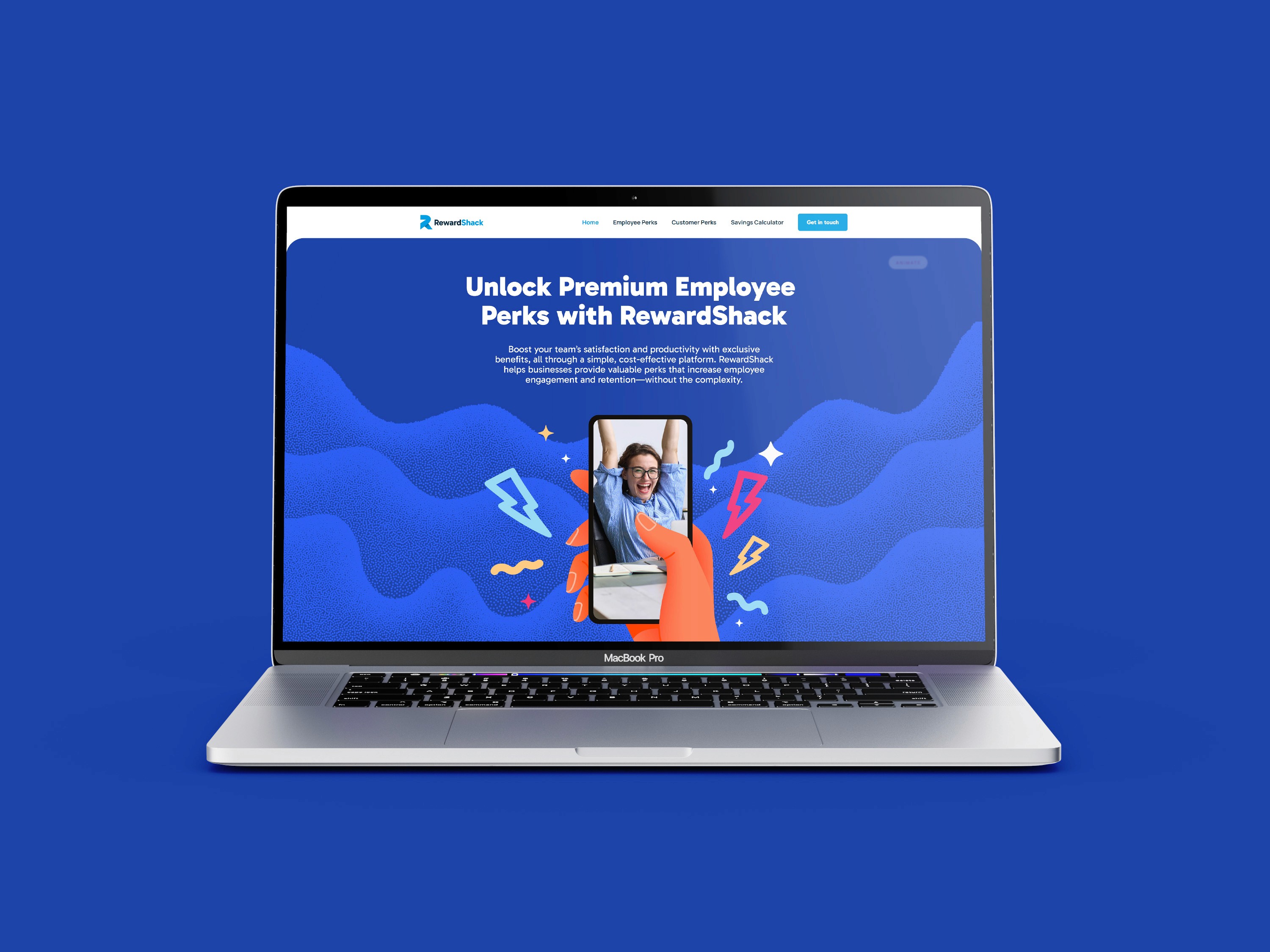RewardShack approached me with a clear vision for their new website. They wanted a design that felt fun, exciting and full of personality, supported by bold character illustrations that would set them apart from the typical corporate look found in the employee benefits sector. Their goal was to create a platform that felt friendly and engaging while still communicating trust, simplicity and value to businesses exploring their services.